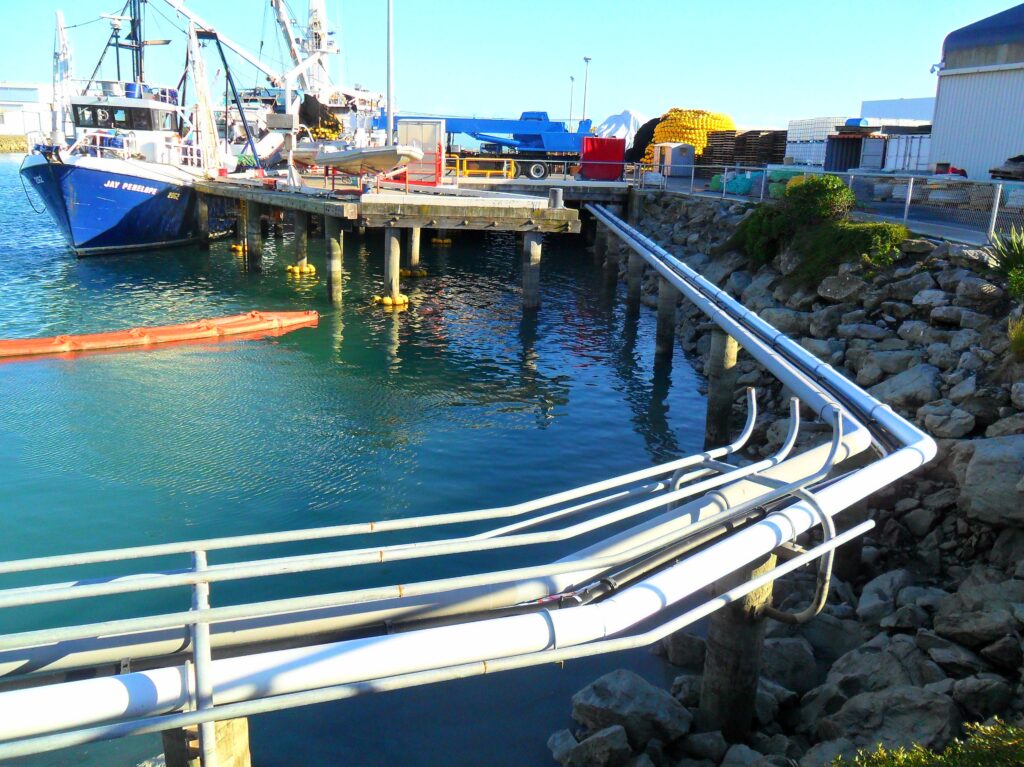 Brightwater fabricated all the stainless steel pipe support brackets and worked in with the pile designer and pile contractor. As the port was always in operation the scheduling of the installation was well planned to minimise disruption to operations as well as working in with the tide cycles as the pipelines were at the high tide mark.