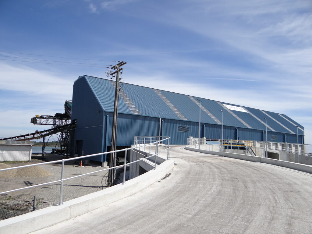 The building had to have an initial operating capacity of +3000 tonnes with a stockpile height up to 5 metres. The building was designed to allow for an increased capacity of 9000 tonnes with the introduction of elevated mechanical in-feed and mechanical reclaim.
